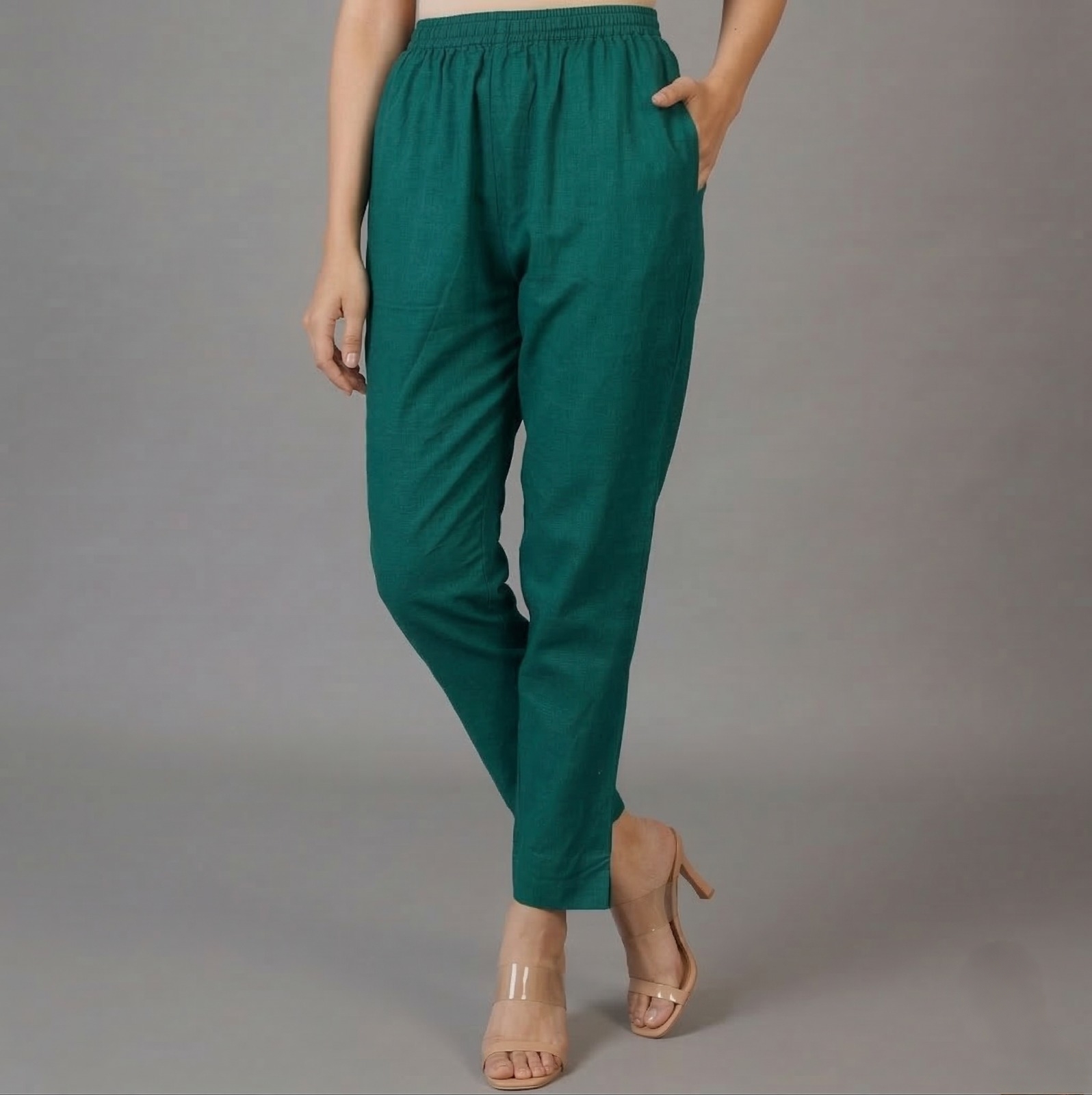 Stay comfortable and stylish with a pair of Classic Green Solid Cotton Pants. Crafted from high-quality cotton fabric, it features an elasticised waistband and functional side pockets, offering a relaxed fit perfect for everyday wear.