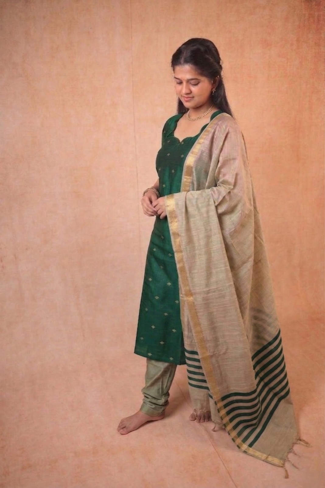 Color: Bottle Green with Kalamkari Dupatta