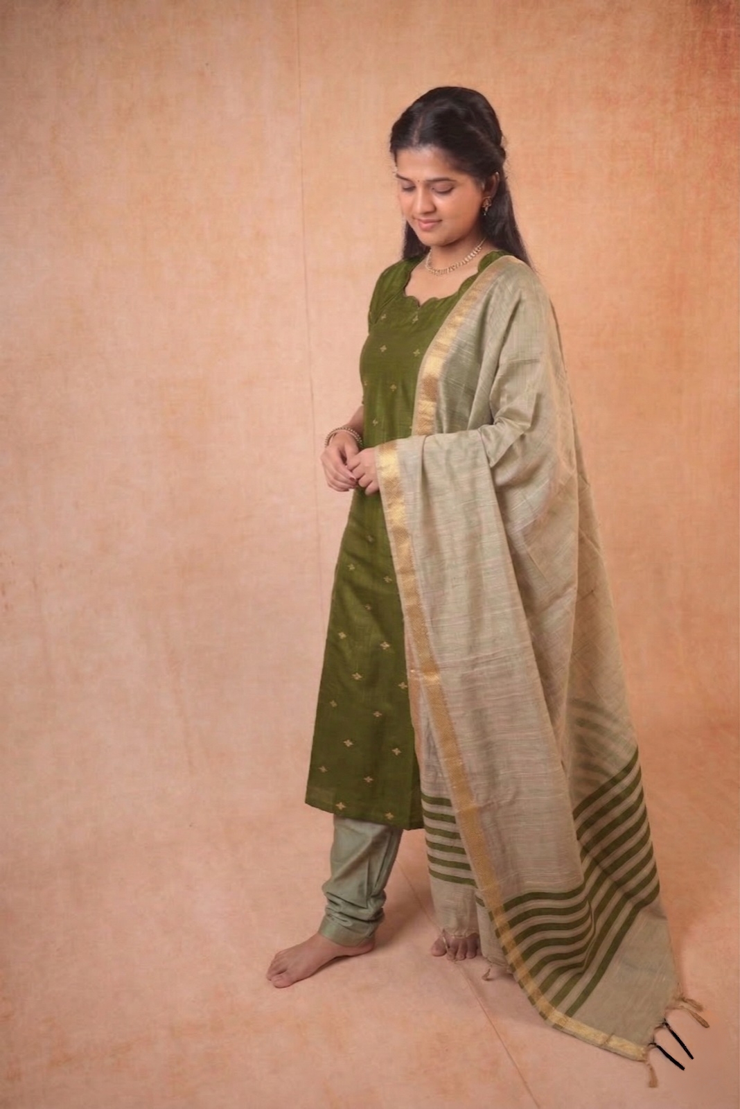 Olive Green kurta with Shawl