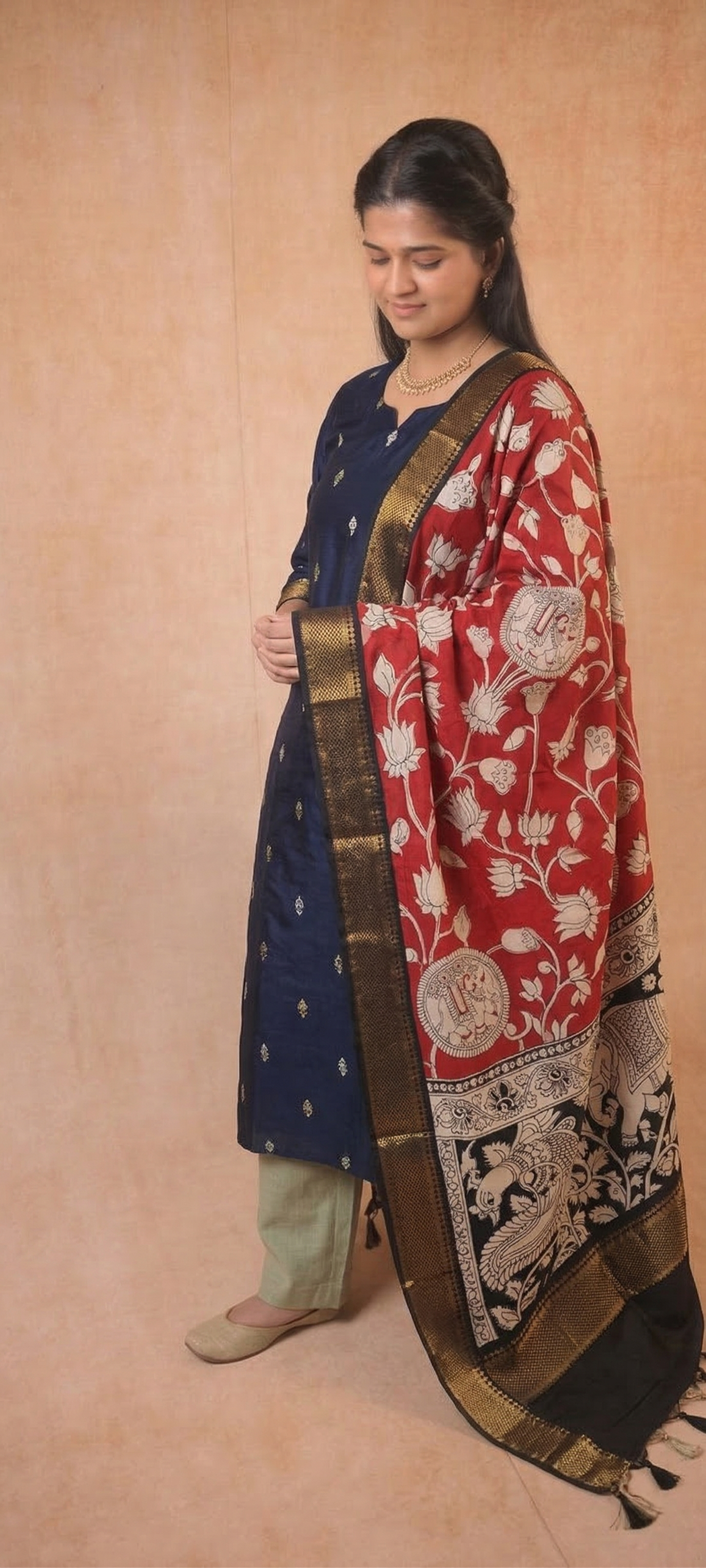 Color: Black Kurta with Kalamkari Dupatta